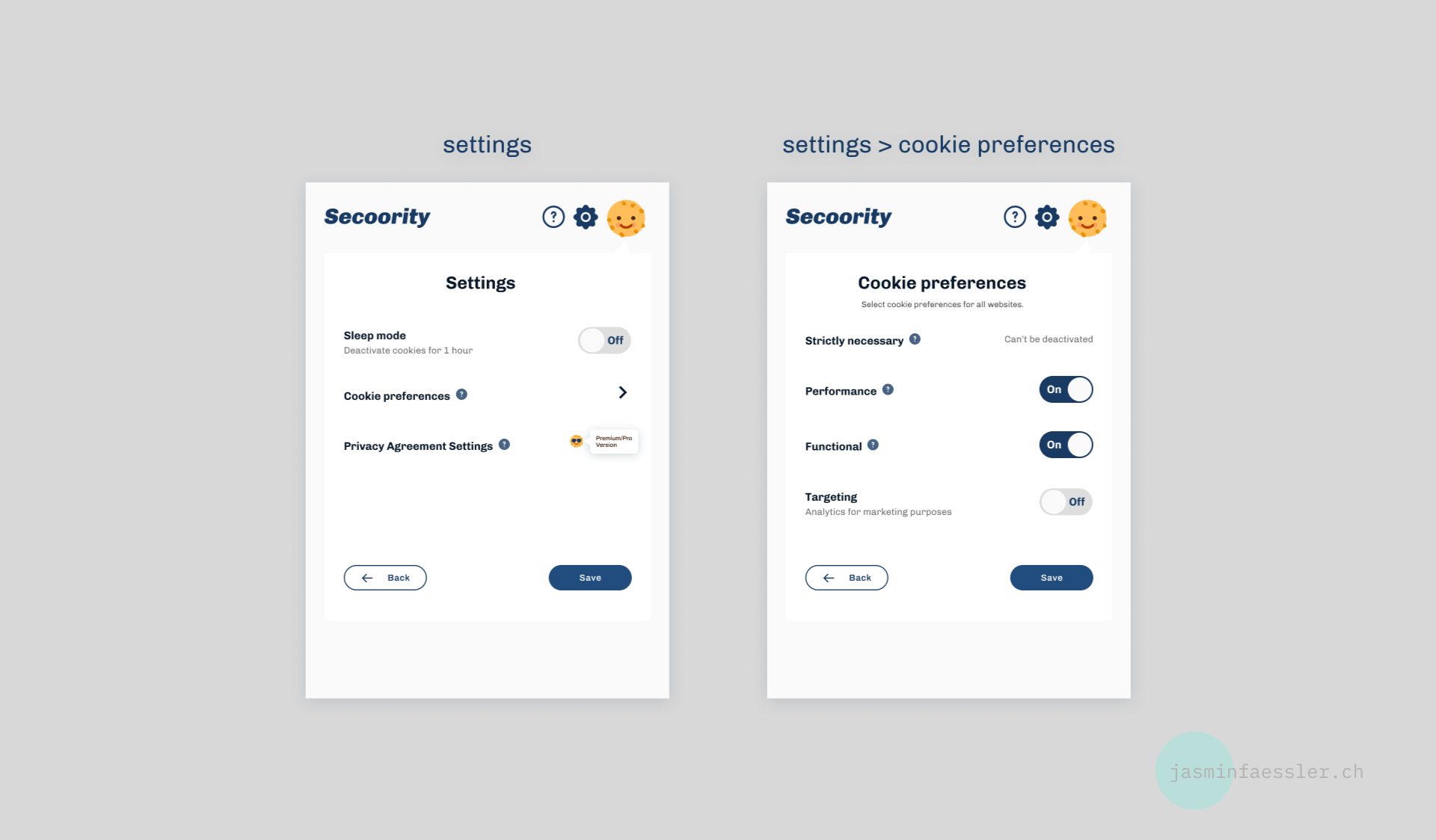 Die Idee war ein Maskottchen für die App und Browser Extension, einzigartig aber simple, soll individuell anpassbar und erweiterbar sein, soll Sicherheit/Vertrauen rüberbringen aber auch Freude an dem langweiligen Thema „Cookies und Datenschutzhinweise“ vermitteln.